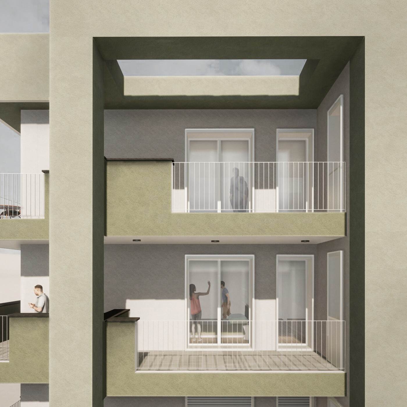 Il soggiorno ha una porta finestra per accedere ad un piccolo terrazzino ottimo per godersi un aperitivo o una cenetta di coppia; mentre la camera matrimoniale ha una porta finestra su un terrazzo coperto di mq 8.